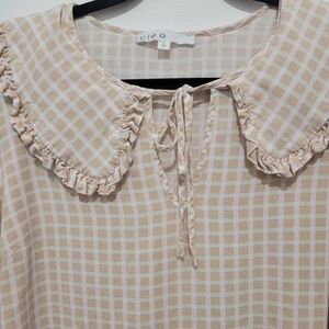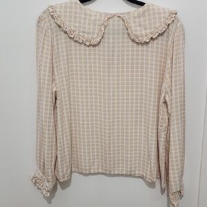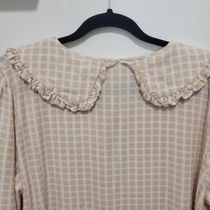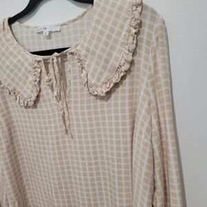 CLEO WOMEN PETER PAN COLLAR GINGHAM PULLOVER LONG SLEEVE BLOUSE