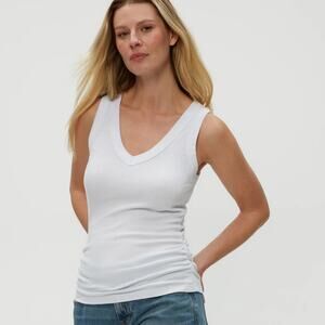 Michael Stars Women's Blanche White V-Neck Ribbed Tank Ruchced Sides - Size XL. In good preowned condition - no stains or flaws. MSRP $68.