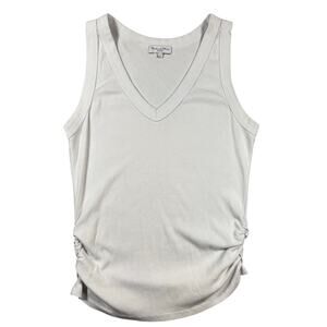 Michael Stars Women's Blanche White V-Neck Ribbed Tank Ruchced Sides - Size XL