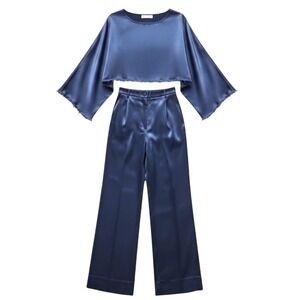 Nonchalant Label Navy Wide Leg Two Piece Set Large Chic Minimalist Quiet Luxury