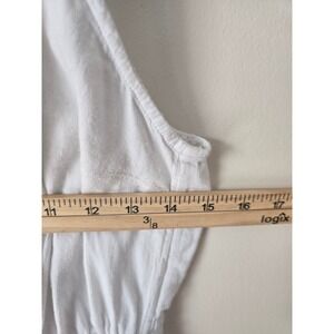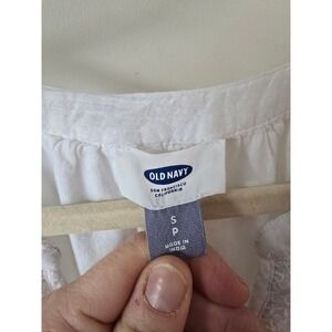 Old Navy sleeveless maxi dress features a delicate lace crochet bodice and a flattering V-neckline. Crafted from breathable 100% cotton, this lightweight piece includes an elasticized waist for a comfortable fit and a racerback-style rear. The crisp white fabric and intricate embroidery details make it a versatile choice for warm-weather outings or beach vacations.