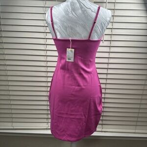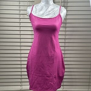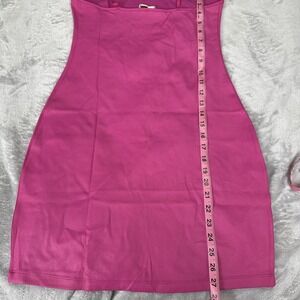 Hot Pink Bodycon Dress Sleeveless Mini Dress Spaghetti Strap Faux Leather Sexy