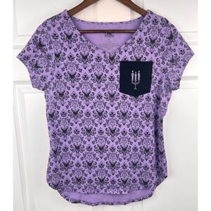 Disney Parks Haunted Mansion Shirt Womens Medium Purple Short Sleeve Wallpaper