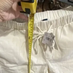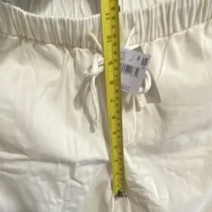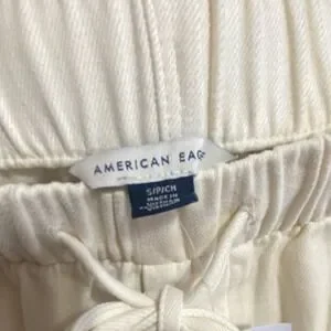 The American Eagle Women's Wide-Leg Drawstring Pants in Ivory, size S, are a stylish and comfortable option for casual occasions. Made from a blend of lyocell and cotton, these pants feature an elastic waist with a drawstring closure for a personalized fit. The wide-leg design and high-rise waist offer a relaxed and flattering silhouette, while the embroidered logo accents add a touch of detail. Ideal for the summer and spring seasons, these capri pants are easy to care for with machine washable fabric. Perfect for pairing with your favorite top and sandals for a chic and effortless look.