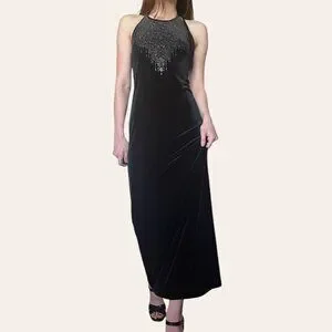 90s vintage sparkly black velvet high neck whimsigoth prom dress Rampage