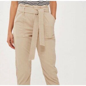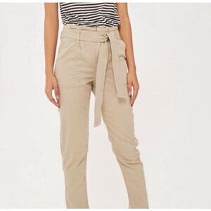 TopShop Paperbag Boyfriend Utility Khaki Front Tie Beige Ivory Pants Size 2
