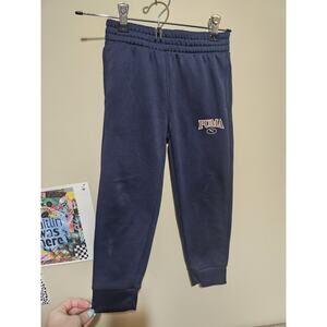 These are comfortable and stylish sweatpants for kids by Puma. They feature an elastic waistband and cuffs, perfect for casual wear.