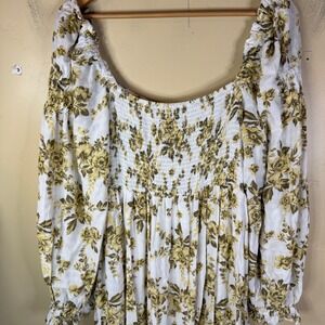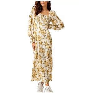 Free People Jaymes Midi Dress XL Pastry Cream Combo Floral Printed Smocked Boho