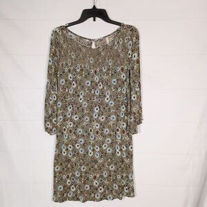 G.I.L.I. Green Floral Smocked Jersey Shift Dress Flared Sleeve S