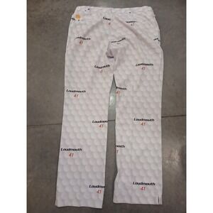 Loudmouth Golf Pants 36x31 White Ball Print Allover Logo Loudmouth 41 Polyester