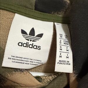 Worn once. Adidas Logo camo green, tan and black sweatshirt. Size M