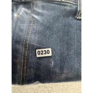 Condition: Pre-owned. Loose thread at waistband (see photo). Intentional distressing and paint splatter design throughout.