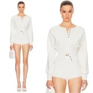 Revolve Helsa XS Elvira ribbed scalloped cardigan in ivory white