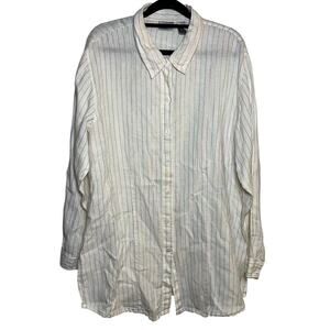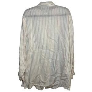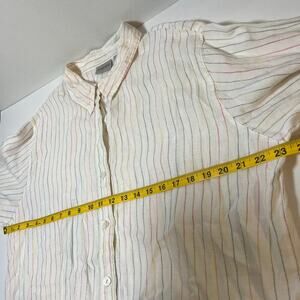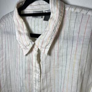 Chicos 100% Linen Button Up Shirt White Rainbow Striped Size 3 Preppy Collared
