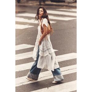 Keywords: white lace top, maxi tunic top, sheer lace top, side slit top, boho lace top, layering tunic, romantic boho, boho luxe, festival layering, summer layering top