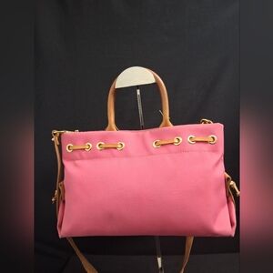 Dooney Bourke Pink Canvas Coat Leather W/ Tassel And Detachable Shoulder Strap