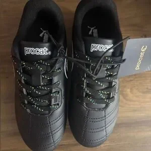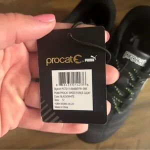 Sleek black athletic shoes by Puma. Features unique patterned laces. Ideal for sports and casual wear.