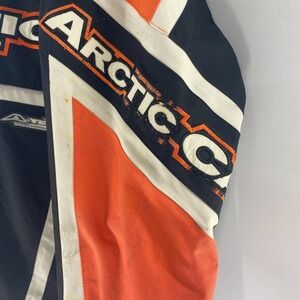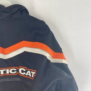 Excellent Condition - No rips, tears, or holes on jacket. All hardware; zippers and zipper pulls, snap buttons,intact and functional. Left Sleeve has some wear to the Ski-Door Spellout Embroidery (pictured). Left Sleeve Arctic Cat Disc Logo is snapped in the middle (pictured). Some smudges on left sleeve as well (pictured). As with all clothing items, please see multiple high resolution pics for exact item and condition.