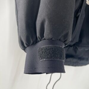 Please note, the front zipper, this jacket is missing the zipper pull for the front enclosure. The zipper pull is missing and one of the zipper rails looks damaged/burned (pictured). The Jacket can be zipped up with the Zippers that sits behind the Front Zippers though as Pictured. All other zippers and snap buttons work, but the front one is flawed.