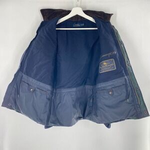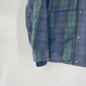 Polo Ralph Lauren "Premium Oil Cloth" Waxed Oilskin Jacket in Excellent Condition. Blackwatch Tartan Plaid Design in Blue and Green. Heavy duty Oil Skin Waxed Cotton Shell. Corduroy Collar and Trim within Pocket Flaps. Leather Trim Details. Quilted Sleeve and Shoulder. Super nice Jacket. Belt Not Included as Shown. 2 Snap Button Internal Pockets and 1 Zippered Internal Pocket. Some condition issues to note, please read condition description.