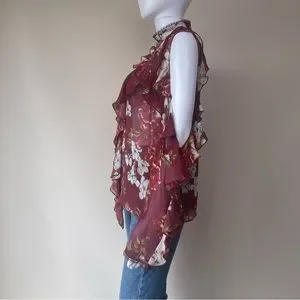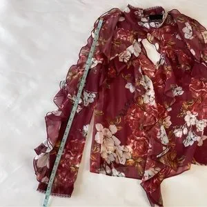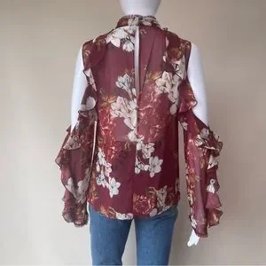 NWT NICHOLAS Floral Print Ruffle Cold Shoulder Silk Blouse