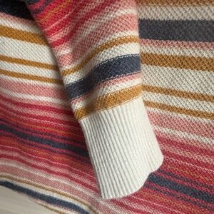 LL Bean Womens Medium Striped Cotton Raglan Sweater Red Pink Mustard 507326