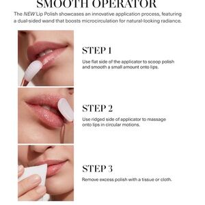 The rich, exfoliating balm texture melts into the lips on application, gently refining and leaving a hint of sweetened mint. The dual-sided applicator helps provide even application, enhance the experience, and boost microcirculation.