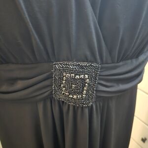 Dress features a stylish beaded belt detail at the empire waist. Fabric is soft and silky with stretch for a sleek and comfortable fit. Perfect for versatile New Year's Eve, holiday parties, and an evening out.
