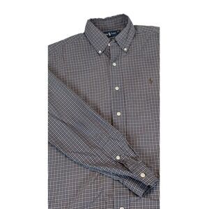 Keywords: Ralph Lauren, button down shirt, mens shirt, classic fit, brown plaid, long sleeve, casual shirt, size M, men's fashion, plaid shirt, preppy style, smart casual, work shirt, everyday wear, academia, grandpa core