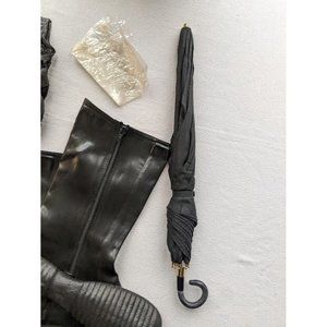 This item is in vintage pre-owned like new condition. No rips, tears, holes or stains. The bag is in like new condition with no cracks, or break down of the material. I don't believe this bag was used much. The umbrella does work beautifully and only shows wear on the handle base. The other items I pulled out to photograph. I don't believe these items were worn much, if at all. This kit appears new. Please review photos before purchase and if you have any questions feel free to message.