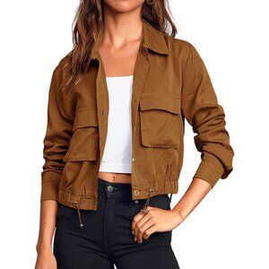 Feature: Lightweight, Button down light jacket women, long sleeve, single breasted, basic solid color, button cuffs, 2 chest pockets, short length, casual cropped style, adjustable drawstring, casual relaxed fit.