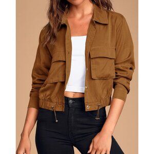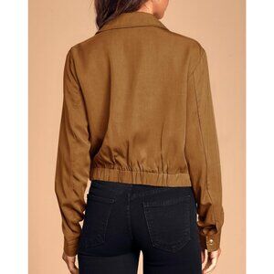 Women's Dark Brown Military Safari Cropped Jackets Button Down Lightweight