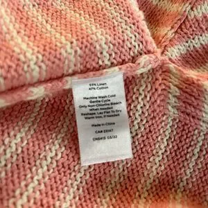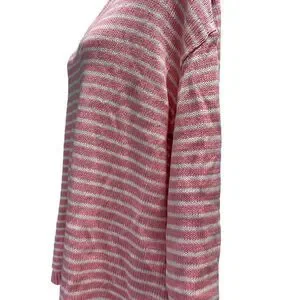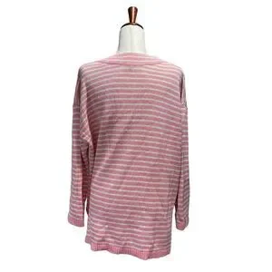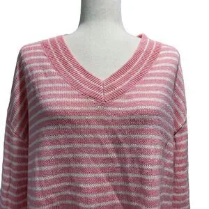 Talbots Sweater 1X Women's Pink & White Striped V-Neck Linen Cotton Longsleeve