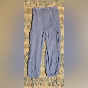 Worn once blue cargo joggers. Perfect for casual outings or lounging at home. Super comfy, adjustable bungee cords at the bottom cuffs. Make an offer!