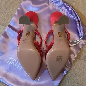 Britt Netta Margot Leather Pink Sequin Pointed Toe Strappy Heels