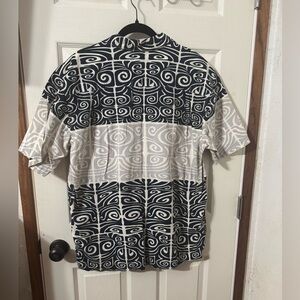 Casual button-down with eye-catching swirl design. Aloha shirt for any occasion. Used but in new condition no flaws…size XL