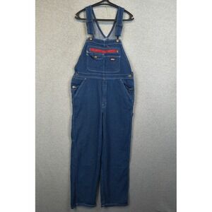 Vintage Dickies Bib Overalls Mens Small Regular Blue Denim Red Zip Workwear