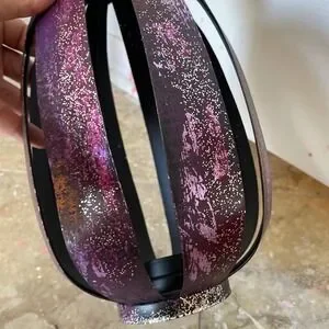 Keywords: witch decor, halloween decoration, candle holder, metal witch, purple decor, green decor, halloween witch, whimsical decor, witch candle, halloween candle holder, metal art, table decor, holiday decor, seasonal decor, witch sculpture