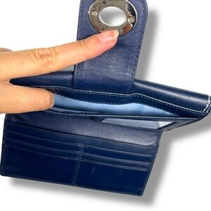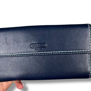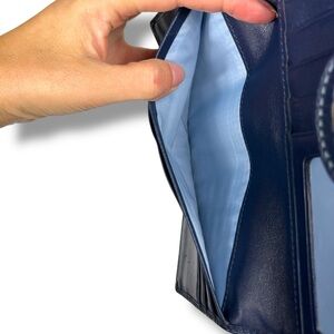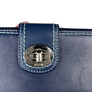 COACH Navy Blue Leather Turnlock Wallet Contrast Stitching Card Holder Classic