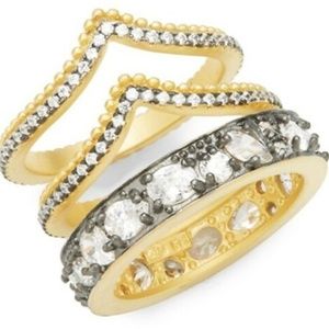 Freida Rothman Sterling Silver Crystal Gilded Stack Rings