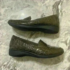 Clarks Collection Womens Gael Angora Loafer Shoes Brown Crocodile Embossed 8M