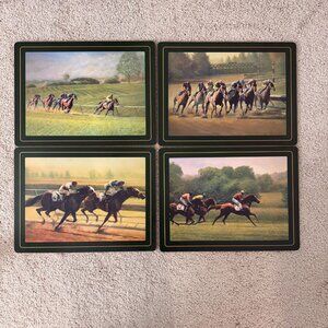 Vtg Pimpernel Set Of 4 Horse Racing Print Mats Cork Backed 12''x16'' England