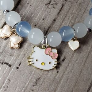 NWT Sanrio Hello Kitty Beaded Cartoon Bracelet Stretchy Blue Gray White