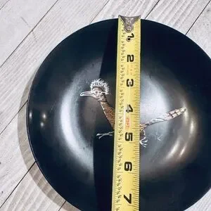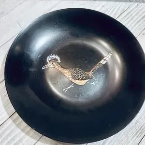 Vintage Couroc Monterey Roadrunner Black Resin Bowl Mid Century Modern 7.5