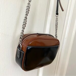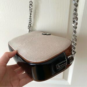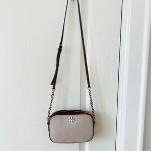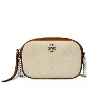 Tory Burch McGraw Color Block Patent Leather Canvas Camera Crossbody Bag