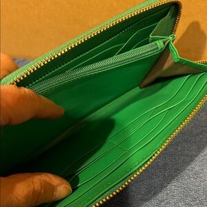 Stylish green leather wallet for women. Perfect for organizing essentials with elegance.