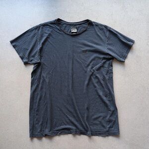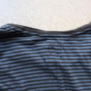 Casual short sleeve tee with navy and black stripes. Perfect for everyday style.