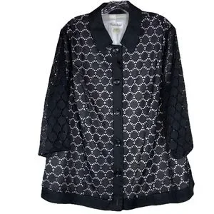 Tanjay Women's Black Button-Up Blazer Style Top – White Lined, Collared, Size 20