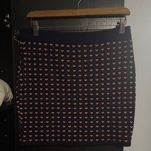 Chic and stylish navy skirt with a charming pink heart pattern. Perfect for adding a playful touch to your wardrobe.