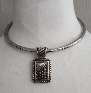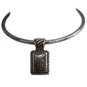 This elegant silvertone pendant choker features a unique textured design, perfect for adding a touch of sophistication to any outfit.